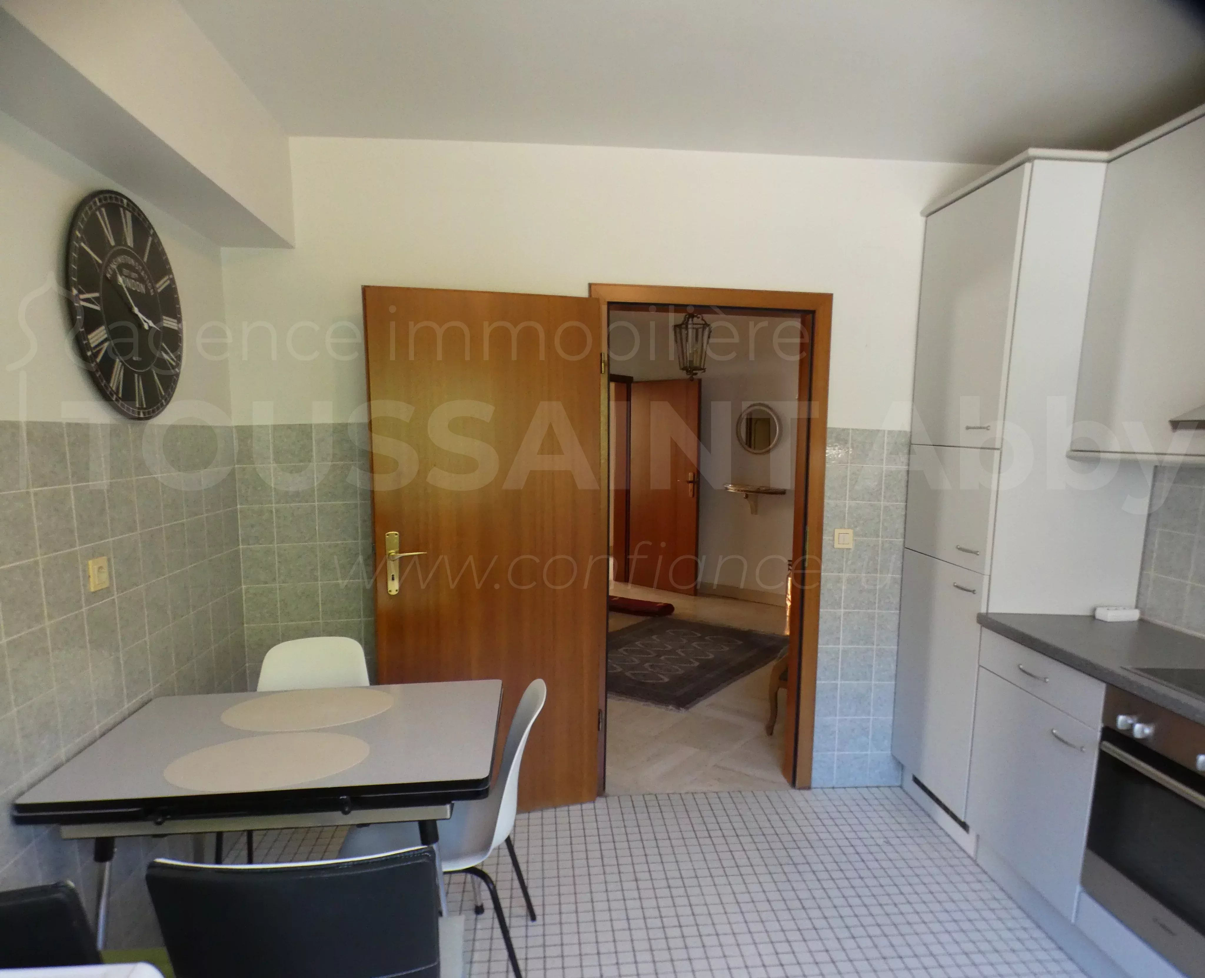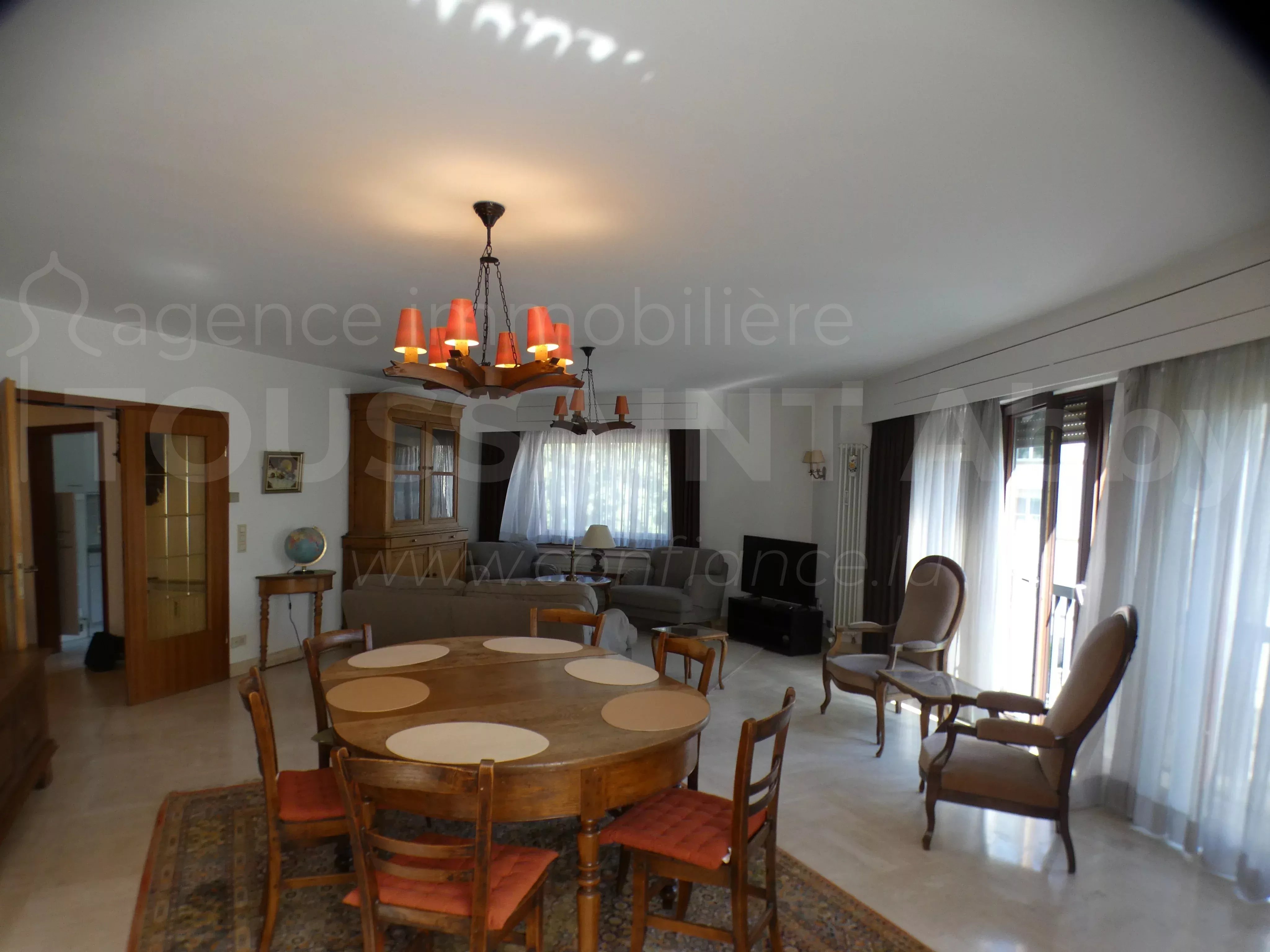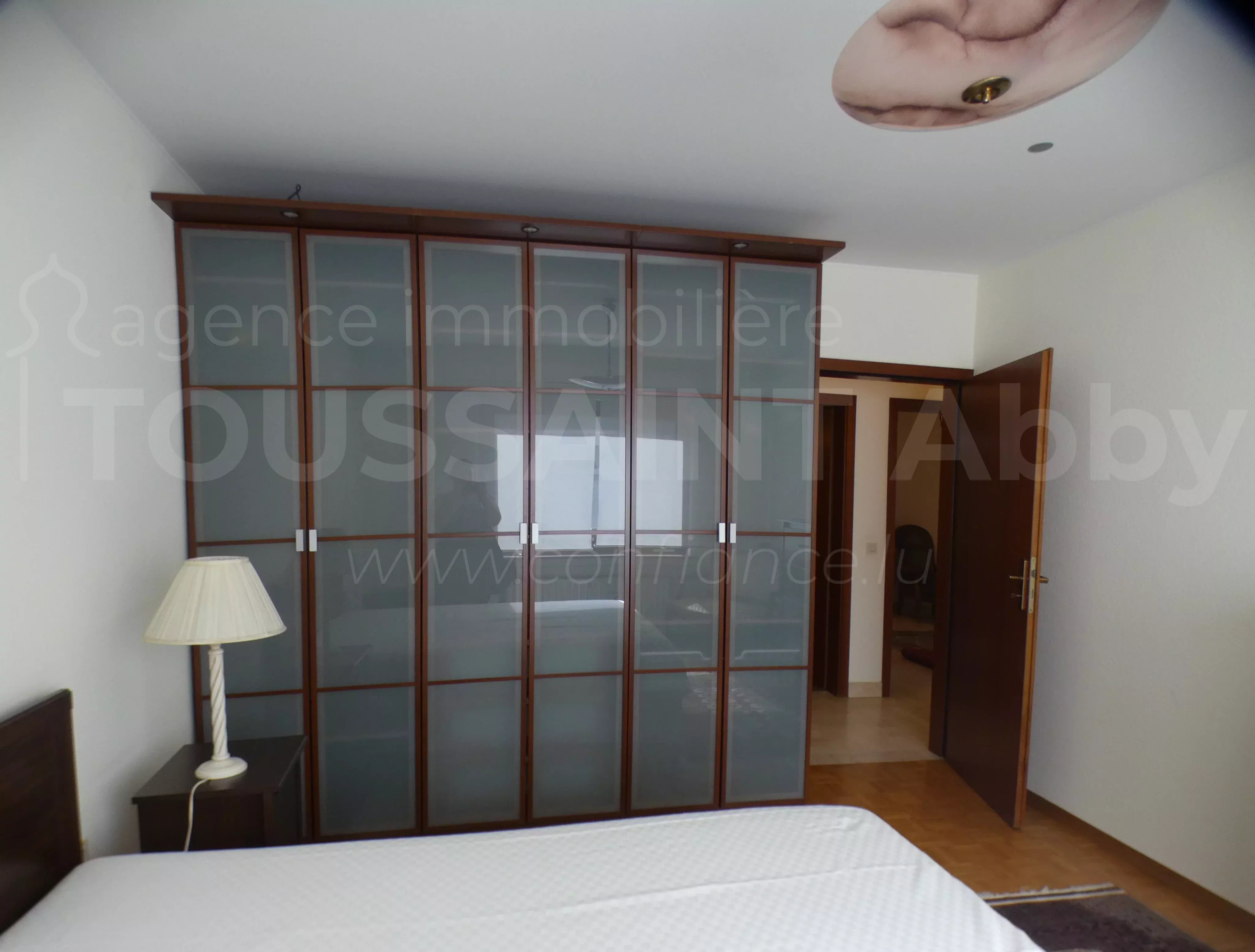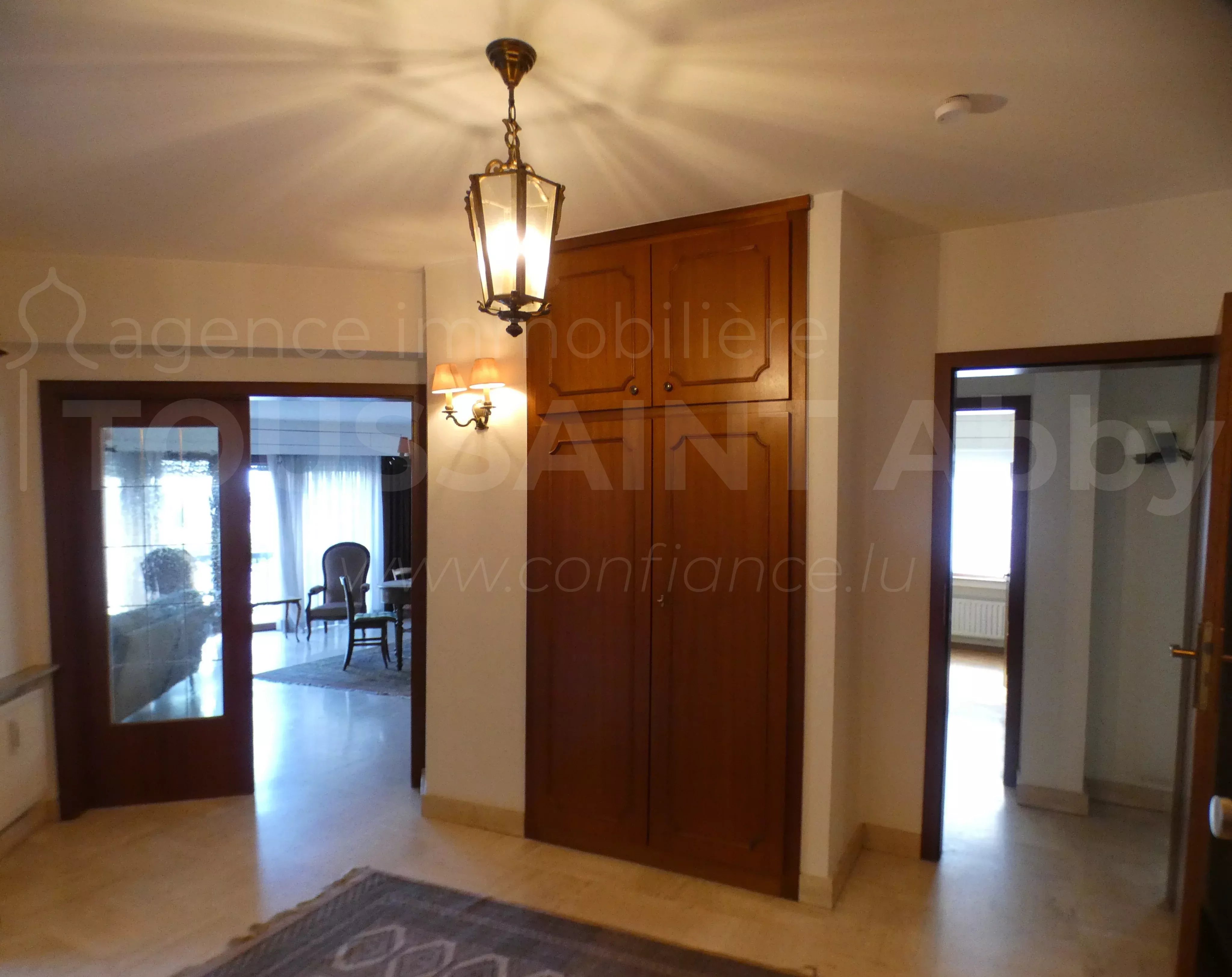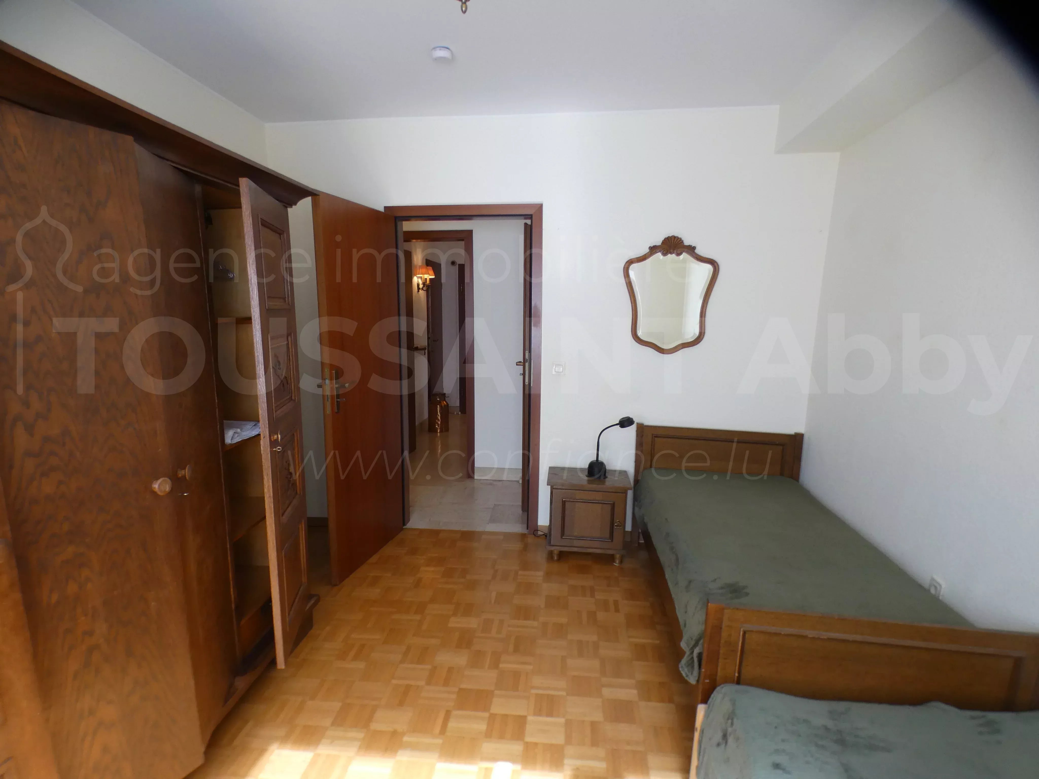 Möblierte Wohnung im 2. Stock mit Aufzug, bestehend aus: Eingangshalle mit Einbauschränken, Wohnzimmer, Esszimmer, Küche mit Waschmaschine und Trockner, 1 separates WC, 2 Schlafzimmer, 1 Abstellraum, 1 Duschbad und 1 Badezimmer.