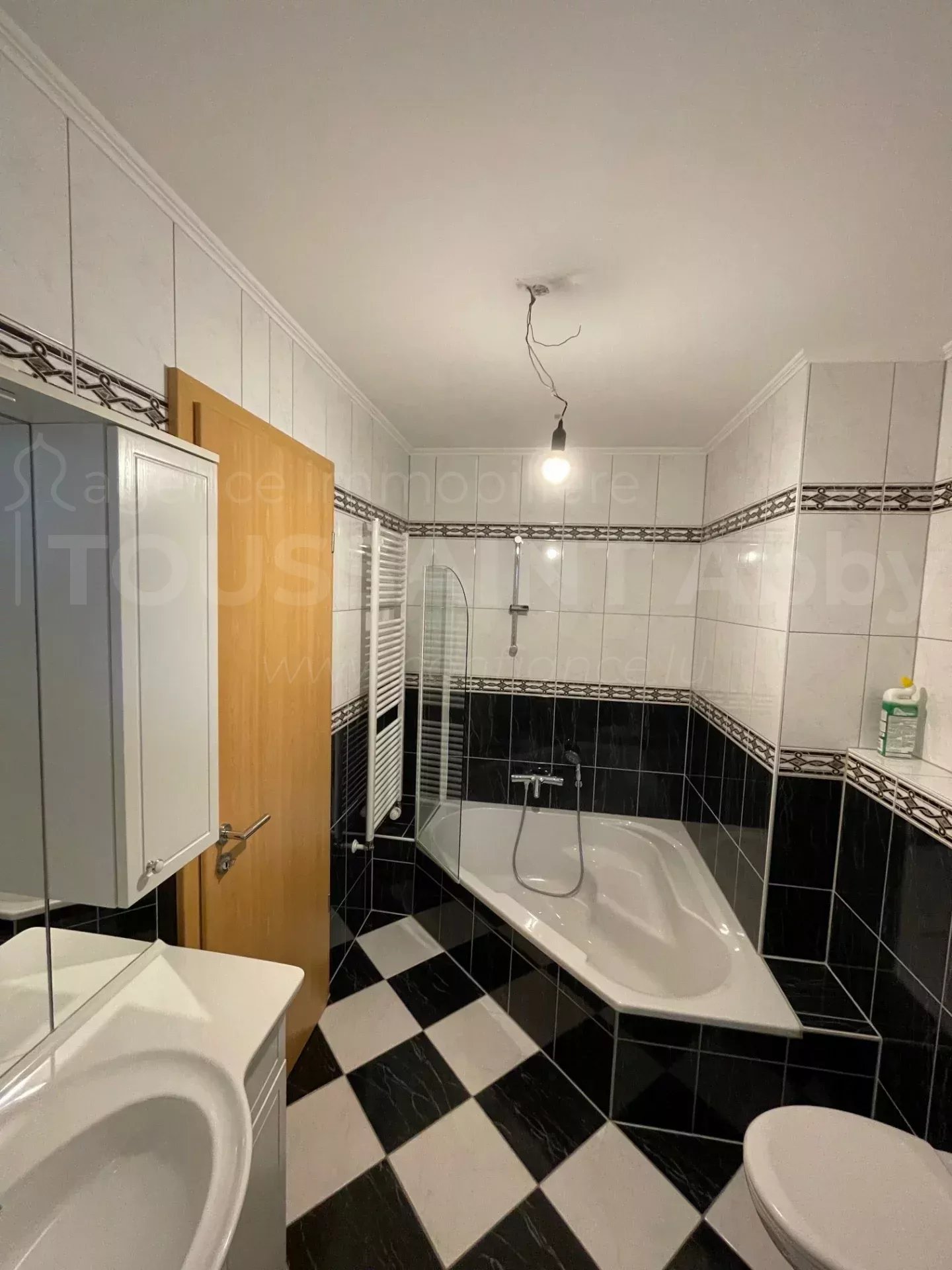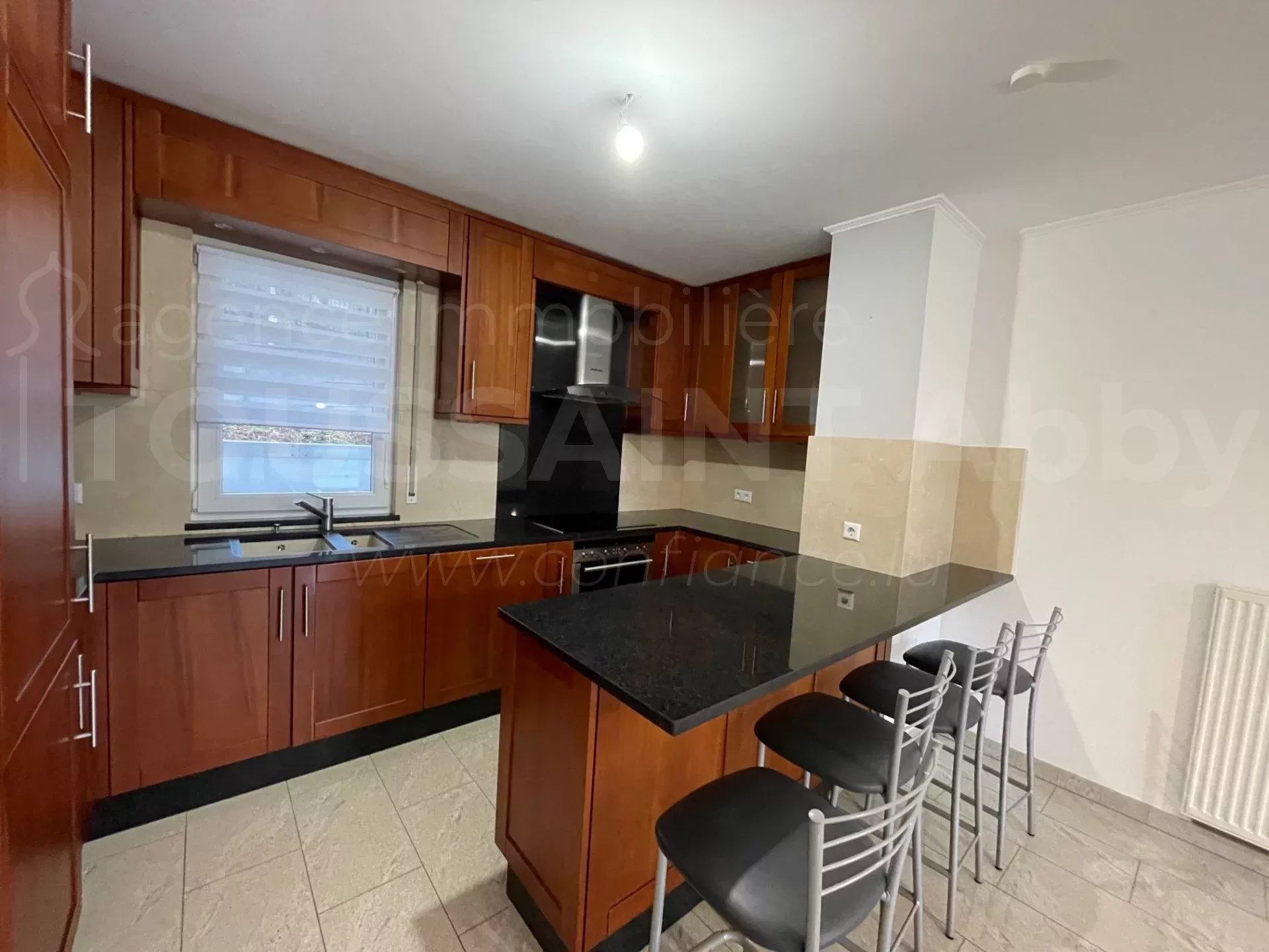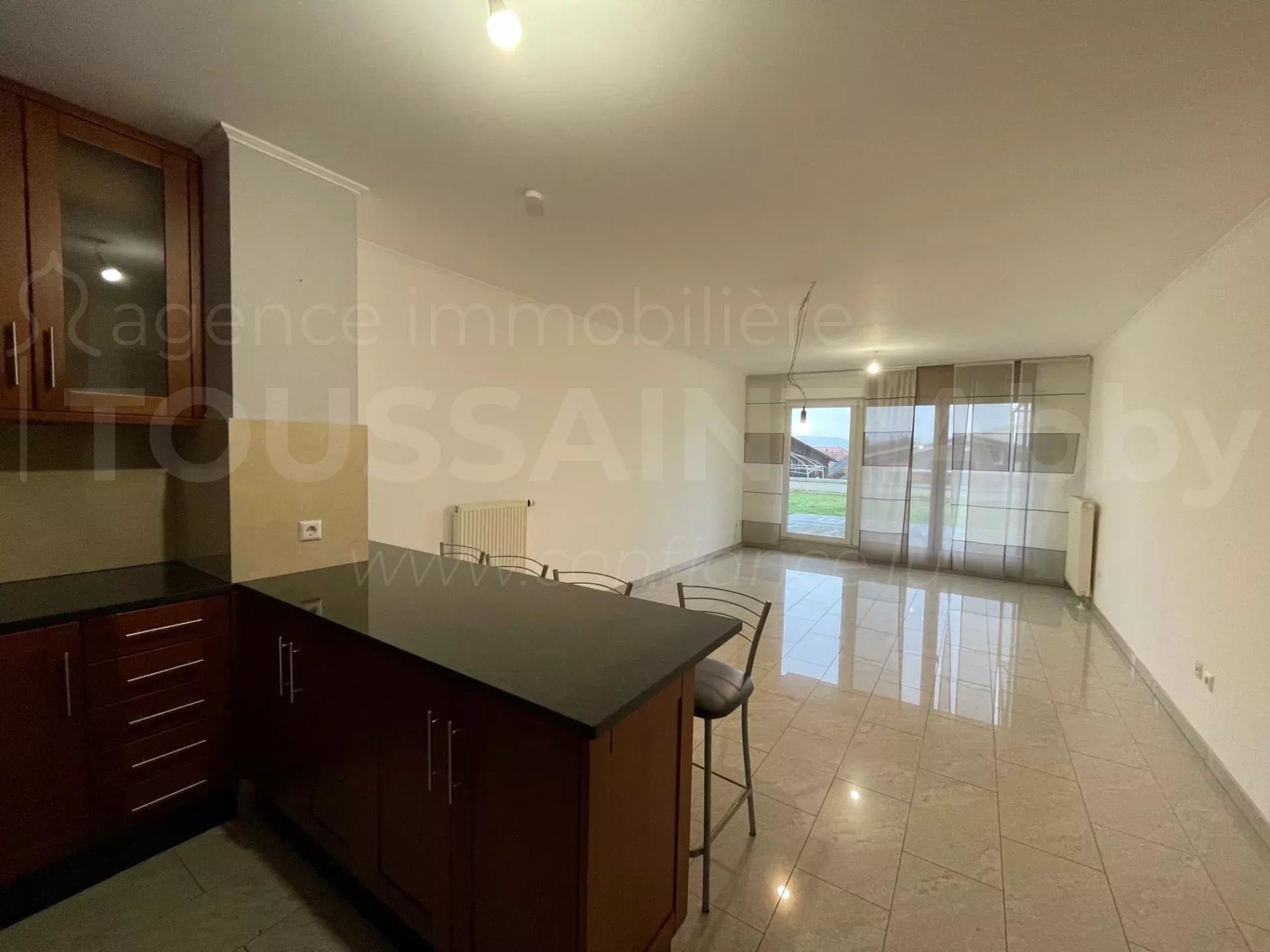 Eingangshalle, Wohnzimmer mit ausgestatteter Küche und Zugang zu einer großen Privatterrasse, Gemeinschaftsgarten, 2 Schlafzimmer, Badezimmer, separates WC.